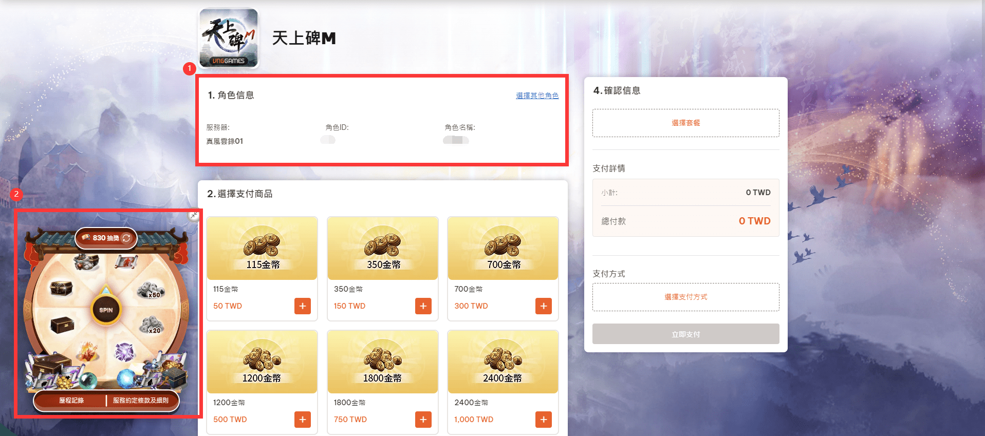 - 如有交易成功後未收到轉動次數的情況,請在遊戲內的支援功能中與我們的客服部門聯繫,客服人員將根據交易紀錄,返還相對應的次數。