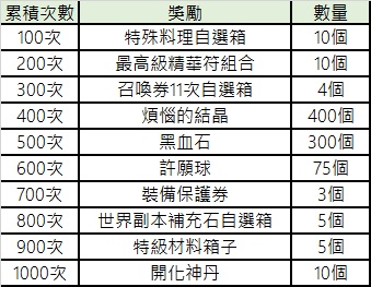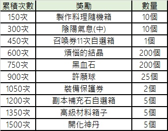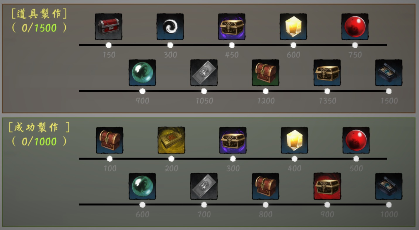 活動期間內,累積製作或成功製作達一定次數,即可獲得獎勵。