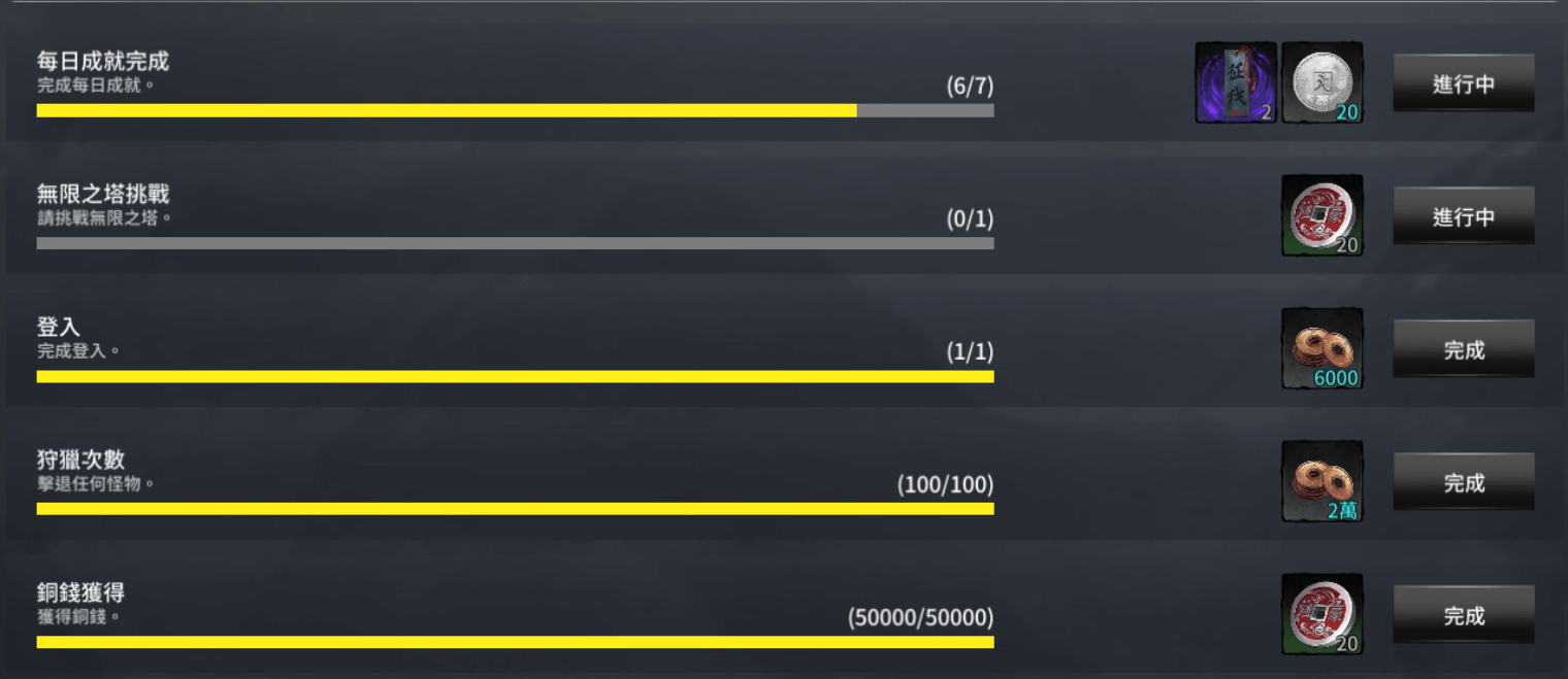 2.每日成就獎勵2倍