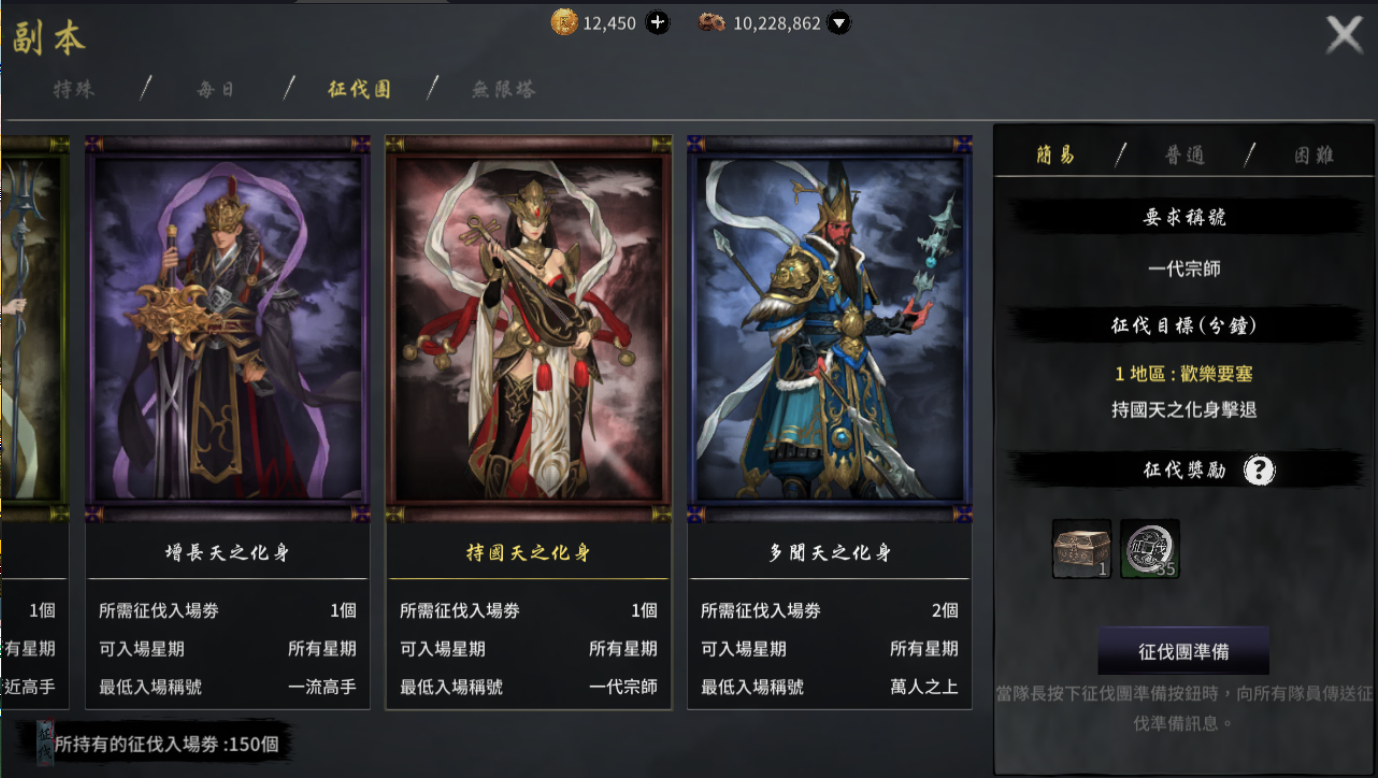- 新征伐團BOSS:持國天之化身/多聞天之化身