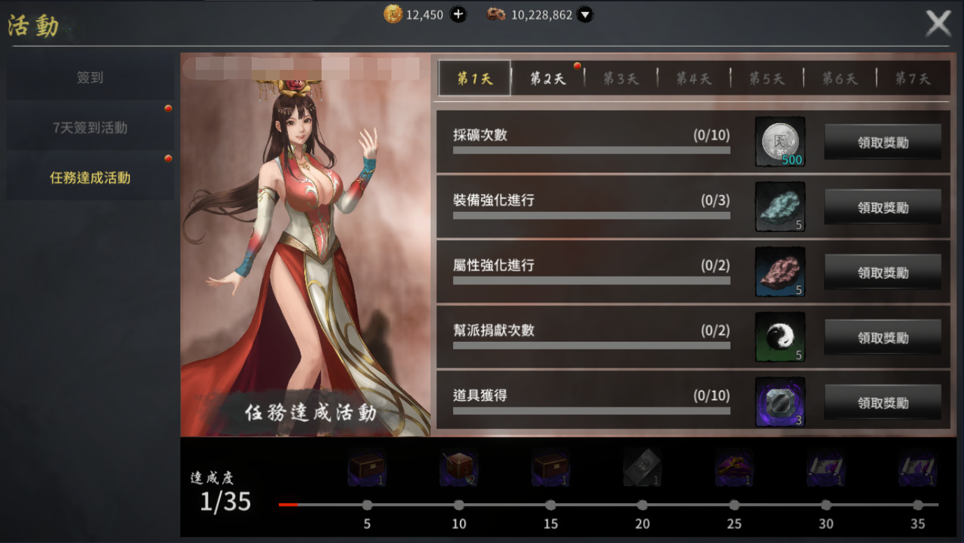 活動期間內共有7天的任務可以進行,只要完成任務即可獲得獎勵,累積達成一定次數再拿追加獎勵。