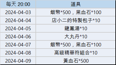 1.主太俠支援活動於維護公告中誤植為2024/4/17結束,應為2024/4/9結束,請少俠注意登入領取時間