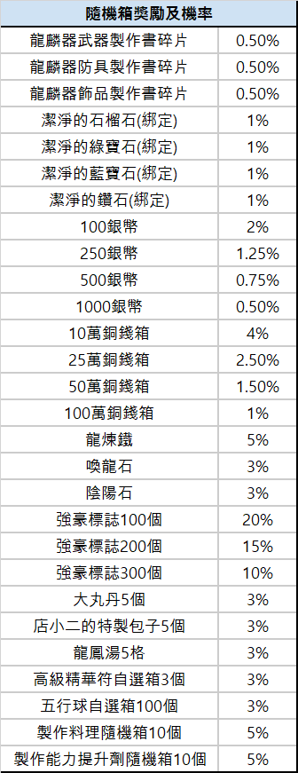 ※隨機寶箱箱相關內容物如下: