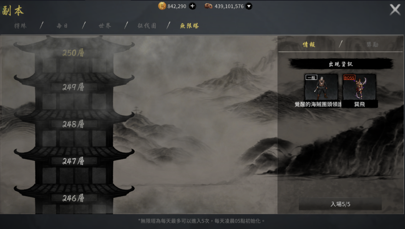 無限塔將由原本的200層擴增至250層,少俠可以挑戰更強的Boss來獲取新的獎勵。