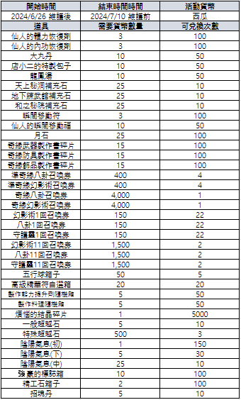 本次特別增設可兌換內容,請少俠把握機會進行兌換哦!