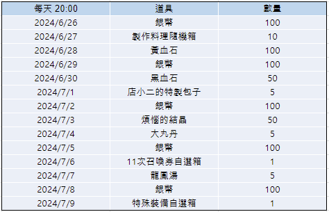 販售時間:2024/6/26 維護後 ~ 2024/7/10 維護前
