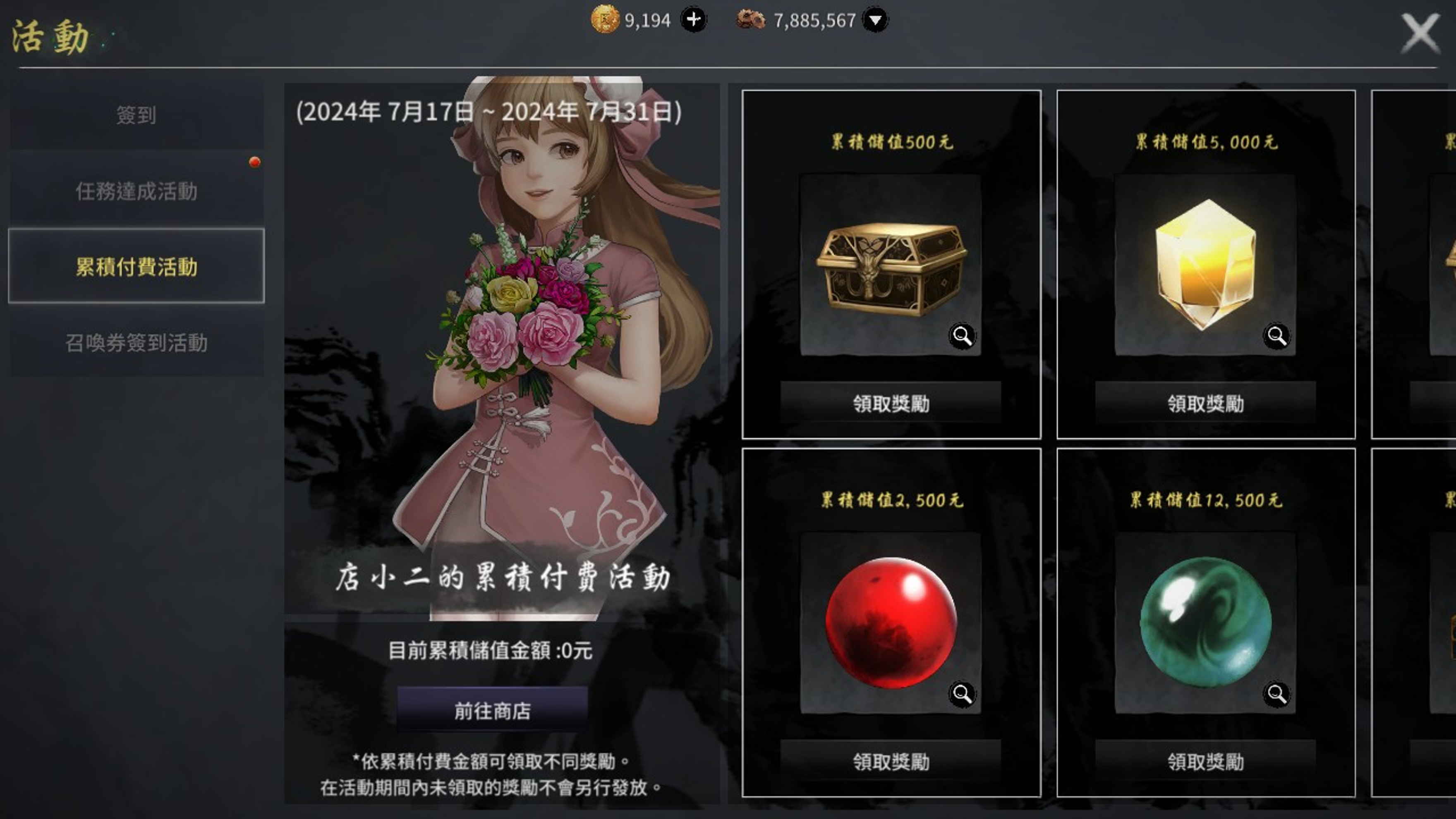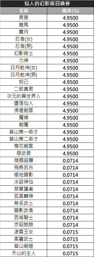 活動期間內,根據累積儲值的金額可以獲得額外的追加獎勵,最高可以獲得仙人的各式召喚券哦!