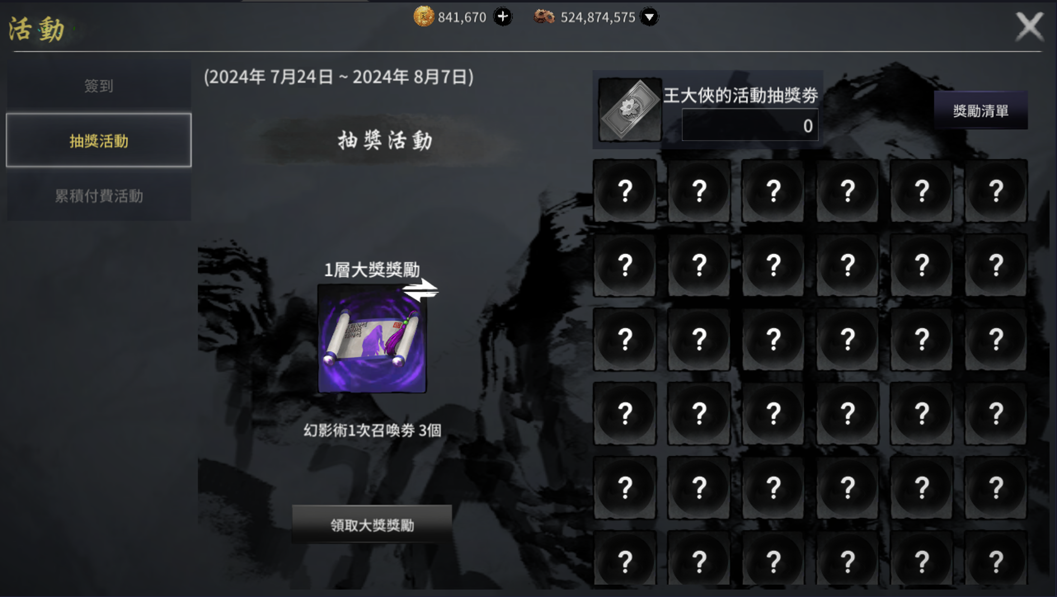 大獎共有10個階段,全部完成後則無法再進行遊戲(前往下一階段後也無法再往前),請少俠注意抽獎券的使用狀況哦!