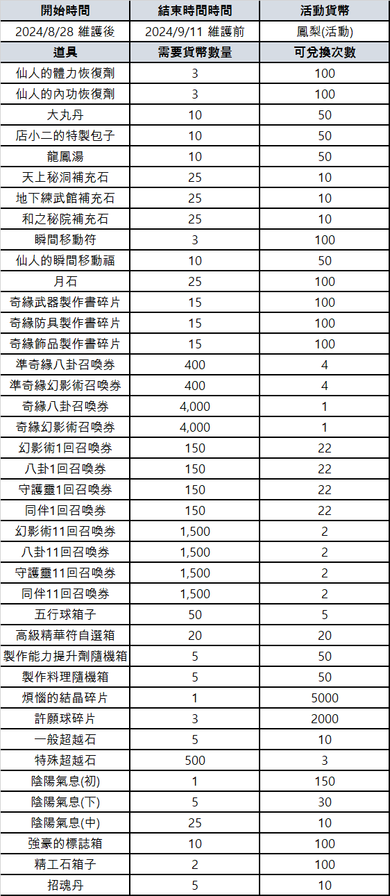 販售時間:2024/8/28 維護後 ~ 2024/9/11 維護前