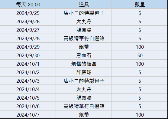 領取條件&時間:2024/9/25 維護前角色創立完畢,並且可以持續領取至2024/9/25 23:59為止