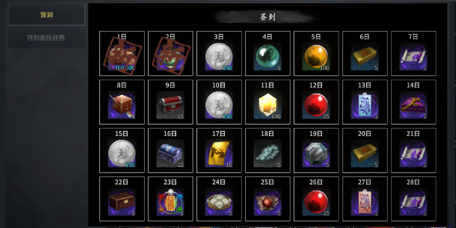 活動期間內每日登入遊戲,即可獲得當日的簽到禮物。
