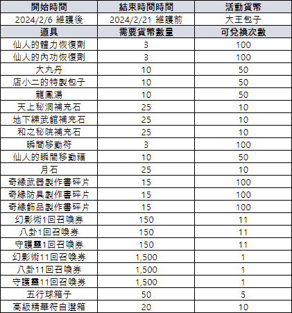 販售時間:2024/2/6 維護後 ~ 2024/2/21 維護前