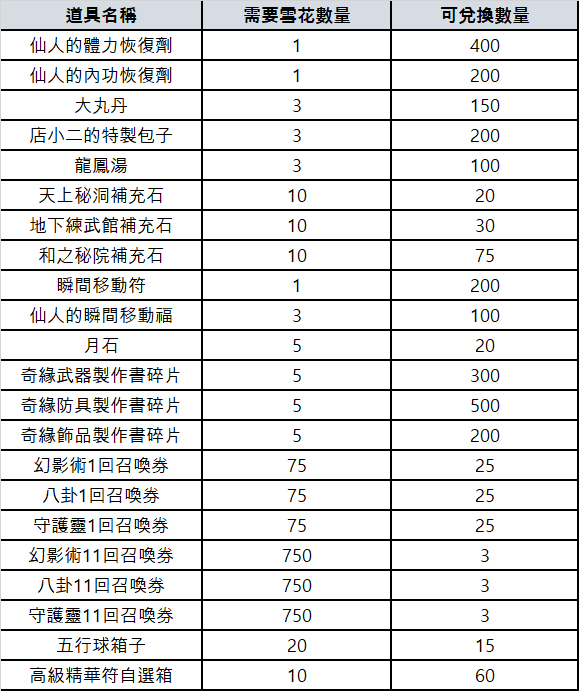 活動地圖中,有50%機率掉落雪花,另外該地圖怪物比一般怪物的經驗值以及銅錢多50%。
