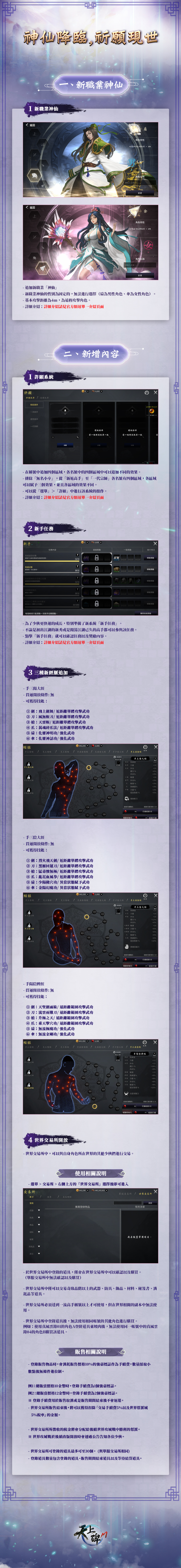 - 神仙角色創立完成後,BUFF畫面中扇角色特性誤植為「攻擊扇角色時傷害 + 20%」,經確認該問題屬於文字誤植,不影響實際效果「攻擊傘角色時傷害 + 20%」(傘角色則相反)。該文字問題將於下次更換遊戲客戶端包體時修正。