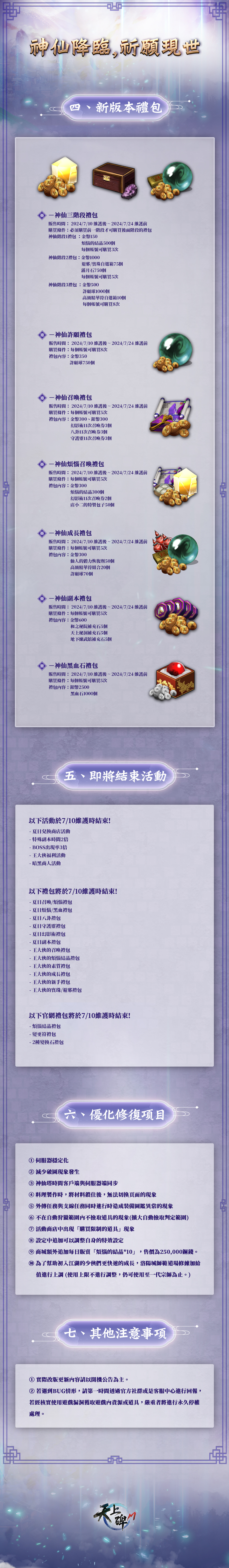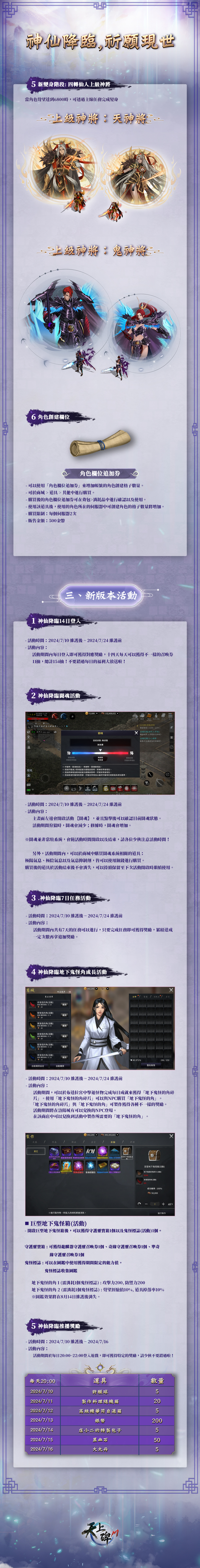 - 神仙降臨地下鬼怪角成長活動請依照遊戲內可兌換次數為主。