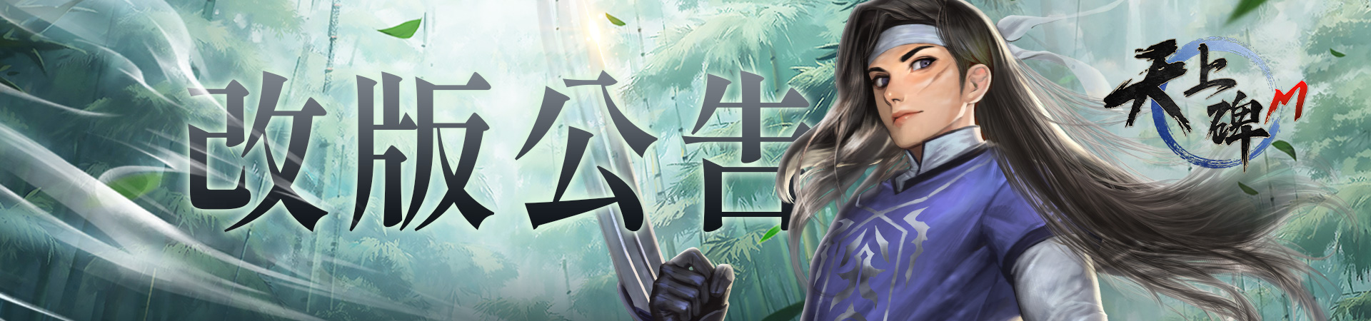 《天上碑M》已於2024/7/10(三) 16:30 伺服器維護更新完畢,少俠可以正常進入伺服器闖蕩江湖!