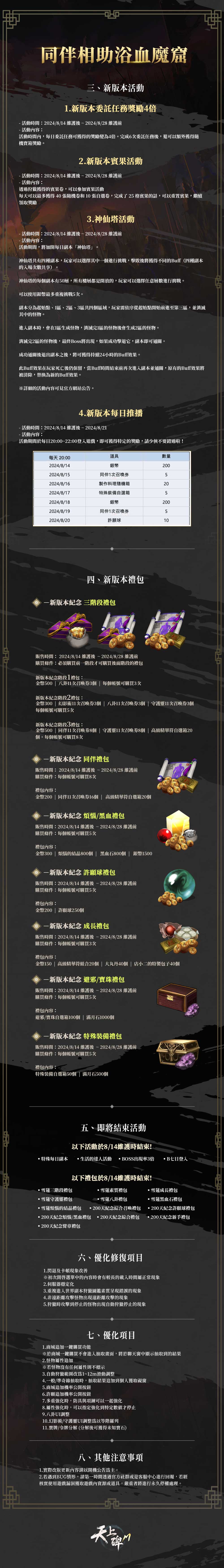 此次維護後需要進行遊戲更新,若您發現遊戲中有禮包未更新/地圖消失/地圖異常破圖/八卦消失/活動副本未開啟/兌換商店尚未替換等異常,請刪除包體後再重新至商店下載或是至官方網站下載專用APK進行更新。(請先綁定帳號後再進行作業以避免帳號遺失)