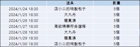 活動時間:2024年1月24日開服後 ~ 2024年1月30日