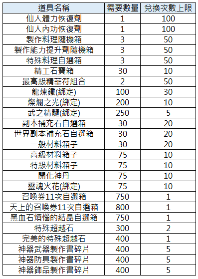 禮包內容:金幣 300個、副本補充石自選箱 20個、世界副本補充石自選箱 10個、五穀飯 20個
