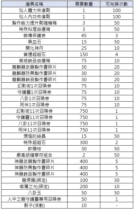 商店中除了有各式素材、消耗品外,還可獲得本次端午節限定的龍麟器級龍舟守護靈「人中之龍」唷!
