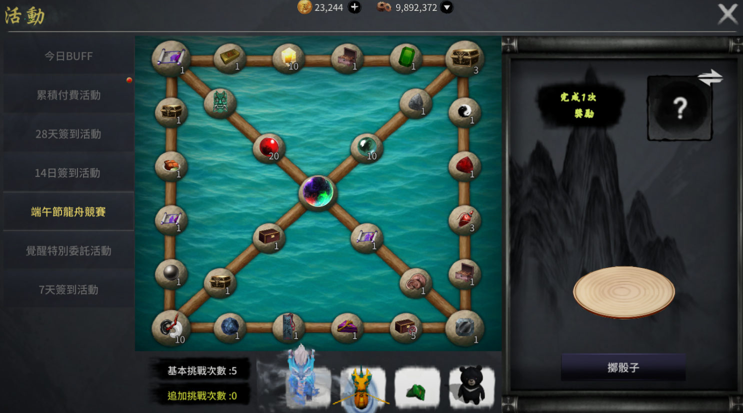 - 活動期間內,可透過活動商店兌換活動道具「骰子」。使用骰子後可增加挑戰次數(骰子需使用活動道具「粽子」兌換)。