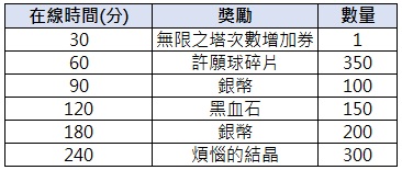活動期間內,每日累積在線達一定時間,即可領取獎勵(每日5點重置)。