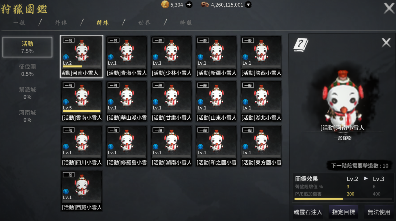小雪人共有16種,只要消滅達一定數量,即可完成圖鑑,在活動期間內獲得額外的能力值。