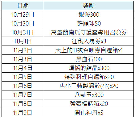 以下禮包將於10/29維護時結束!