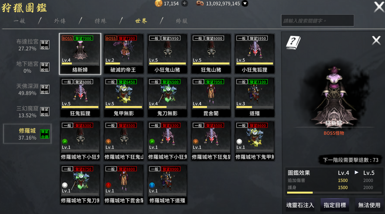 - 新增修羅城地下地圖相關狩獵圖鑑(一般怪物8種)。