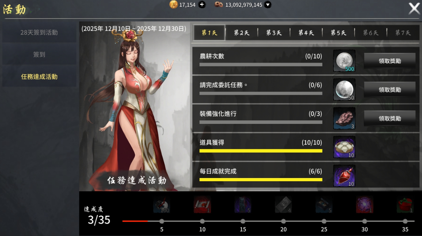 活動期間共推出7天限時任務,每日解鎖下一日的新任務。完成指定任務後即可獲得獎勵。