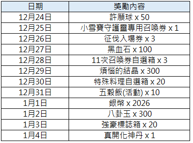 - 活動時間:2025/12/24 維護後 ~ 2026/01/07 維護前