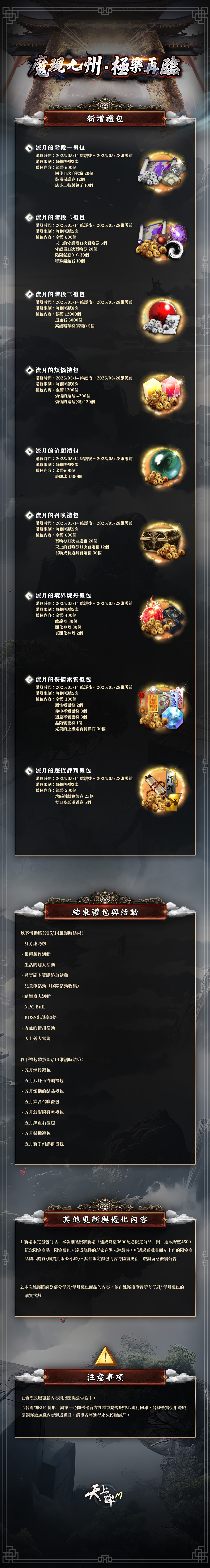 此次維護後需要進行遊戲更新。若您發現遊戲中有禮包未更新/地圖消失/地圖異常破圖/八卦消失/活動副本未開啟/兌換商店尚未替換等異常,請刪除包體後再重新至商店下載或是至官方網站下載專用APK進行更新。(請先綁定帳號後再進行作業以避免帳號遺失)