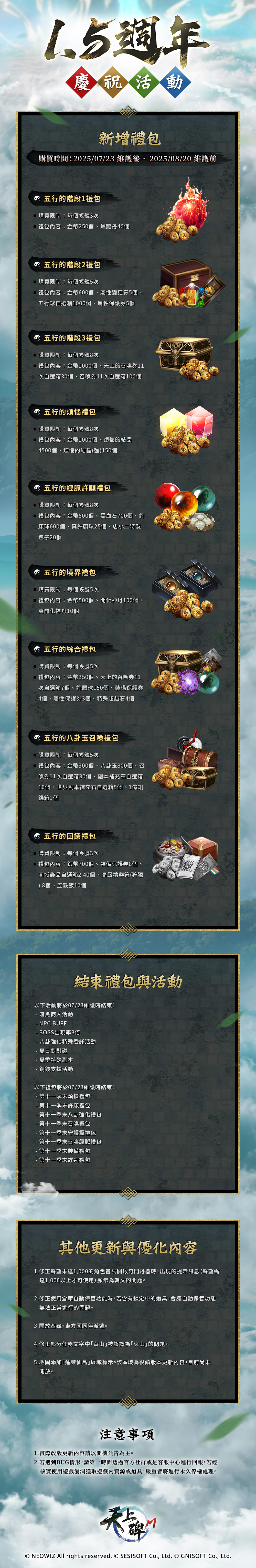 3.本次維護新增的活動禮包販售時間誤植為「2025/08/20 維護前」,正確販售結束時間更正為「2025/08/06 維護前」。