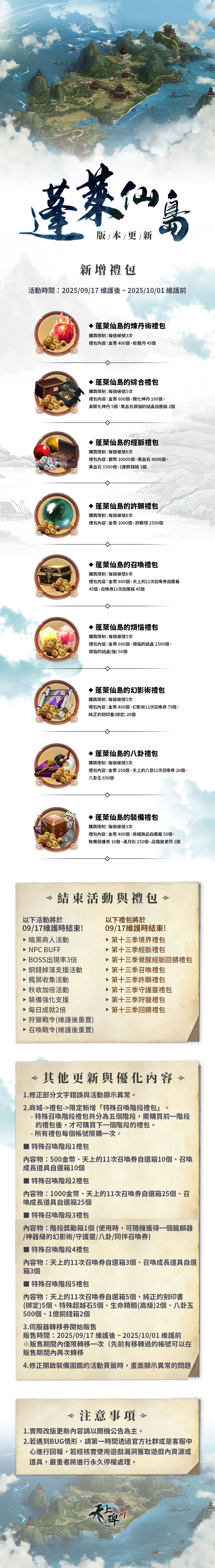 此次維護後需要進行遊戲更新。若您發現遊戲中有禮包未更新/地圖消失/地圖異常破圖/八卦消失/活動副本未開啟/兌換商店尚未替換等異常,請刪除包體後再重新至商店下載或是至官方網站下載專用APK進行更新。(請先綁定帳號後再進行作業以避免帳號遺失)