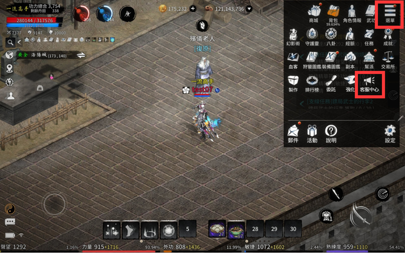 (1) 至遊戲畫面右上方「選單」→ 點擊「客服中心」
