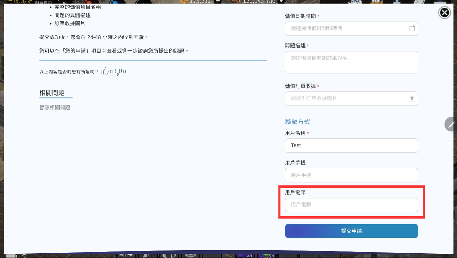 *在聯繫方式中留下 Email,讓客服在處理回報單時通知您!