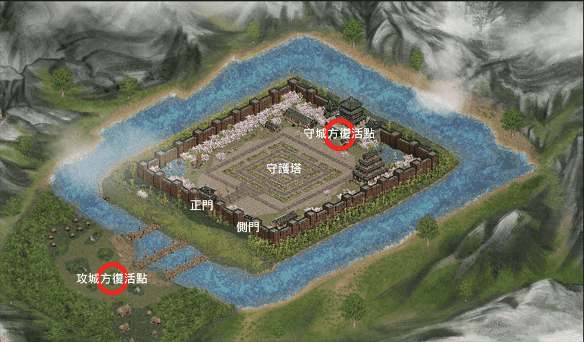 - 攻城/守城方角色死亡後重生的地點無法進行攻擊,屬於安全地帶。